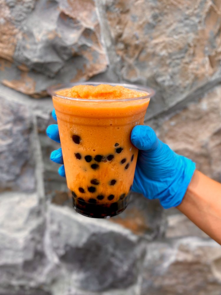 Bubble tea originated in Taiwan in the 1980’s and quickly became a staple across the Asian culture. It wasn’t until the late 2000’s when it made its way to the United States. Normally, it’s served as a liquid on ice with sweet and chewy tapioca boba on the bottom. However, because of the extreme temperatures of Thailand’s climate, they serve their bubble tea “Thai Style” as a frozen shake.